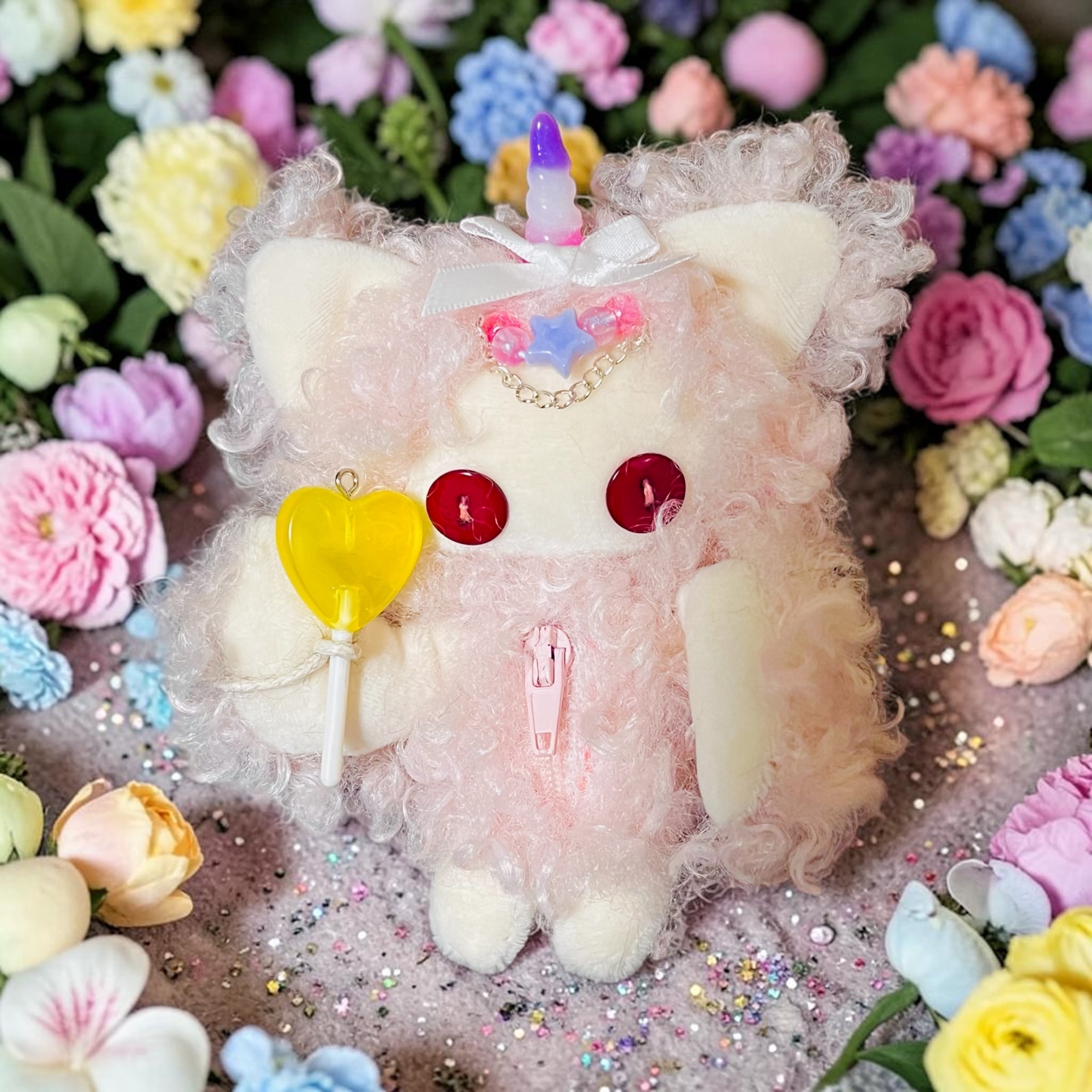 角があり手には星のステッキをもった夢かわプリンセス♡フワフワカーリーな毛が特徴だよ